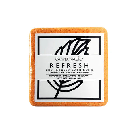 The Magic Bath Bombs contain 100MG broad spectrum CBD oil, Hemp, Coconut oil and Cocoa butter, citric acid, bicarbonate soda and bath salts along with a blend of essential oils.